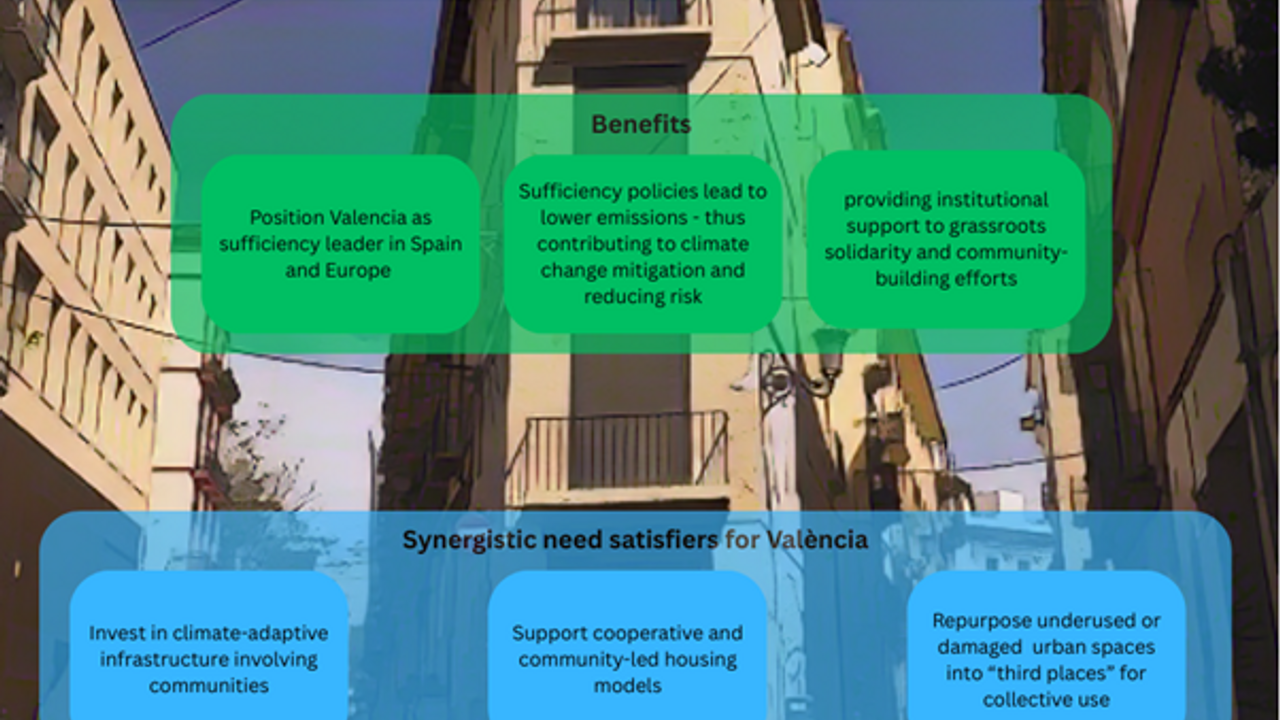 The 2024 floods revealed both València's climate vulnerability and the strength and importance of its solidarity networks. The city can respond by enacting policies that meet multiple needs while staying within ecological limits. Rather than prescribing lifestyles, sufficiency reshapes structural conditions, making it easier to live well with less.
