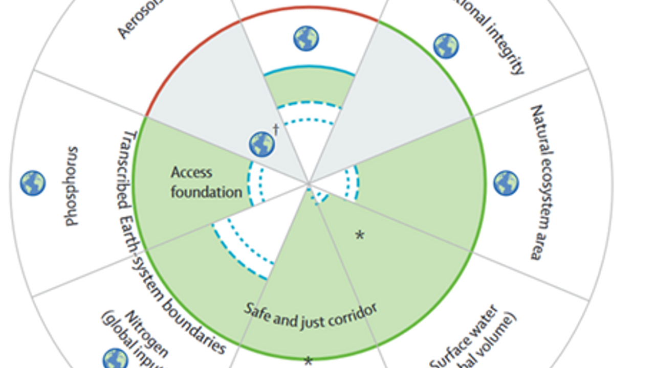 The framework has been extended in 2023 (external link) to the Earth System Boundaries framework, offering specific, actionable targets that are both safe (precautionary approach) and just (principle of no significant harm to populations). Accordingly, a safe boundary for climate change is 1.5°C of global warming by the end of the century. However, the just boundary is 1°C of global warming to mitigate the already visible impacts of climate change.